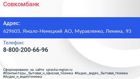 Совкомбанк по адресу 629603, Ямало-Ненецкий АО, Муравленко, Ленина, 93 в дальнейшем Организация, размещена в следующих категориях: