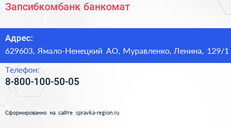 Запсибкомбанк, банкомат по адресу 629603, Ямало-Ненецкий АО, Муравленко, Ленина, 129/1 в дальнейшем Организация, размещена в следующих категориях: