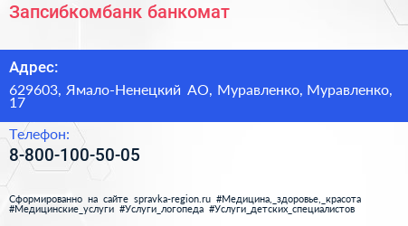 Запсибкомбанк, банкомат по адресу 629603, Ямало-Ненецкий АО, Муравленко, Муравленко, 17 в дальнейшем Организация, размещена в следующих категориях: