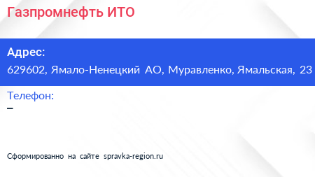 Газпромнефть ИТО по адресу 629602, Ямало-Ненецкий АО, Муравленко, Ямальская, 23 в дальнейшем Организация, размещена в следующих категориях: