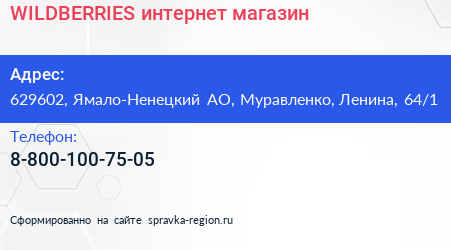 WILDBERRIES, интернет-магазин по адресу 629602, Ямало-Ненецкий АО, Муравленко, Ленина, 64/1 в дальнейшем Организация, размещена в следующих категориях: