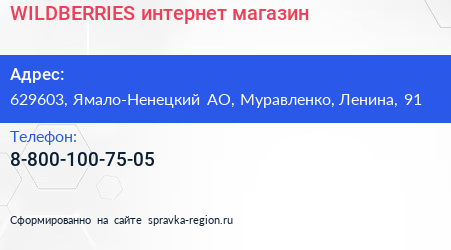 WILDBERRIES, интернет-магазин по адресу 629603, Ямало-Ненецкий АО, Муравленко, Ленина, 91 в дальнейшем Организация, размещена в следующих категориях: