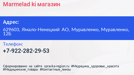 Marmelad.ki, магазин по адресу 629603, Ямало-Ненецкий АО, Муравленко, Муравленко, 12Б в дальнейшем Организация, размещена в следующих категориях: