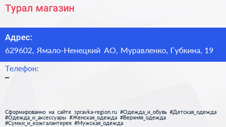Турал, магазин по адресу 629602, Ямало-Ненецкий АО, Муравленко, Губкина, 19 в дальнейшем Организация, размещена в следующих категориях: