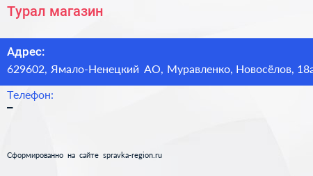 Турал, магазин по адресу 629602, Ямало-Ненецкий АО, Муравленко, Новосёлов, 18а в дальнейшем Организация, размещена в следующих категориях: