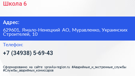 Школа №6 по адресу 629601, Ямало-Ненецкий АО, Муравленко, Украинских Строителей, 10 в дальнейшем Организация, размещена в следующих категориях: