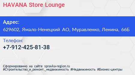 HAVANA Store & Lounge по адресу 629602, Ямало-Ненецкий АО, Муравленко, Ленина, 66Б в дальнейшем Организация, размещена в следующих категориях: