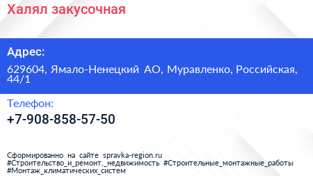 Халял, закусочная по адресу 629604, Ямало-Ненецкий АО, Муравленко, Российская, 44/1 в дальнейшем Организация, размещена в следующих категориях: