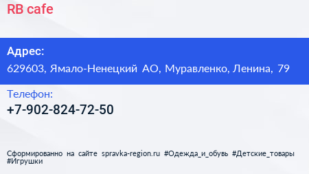 RB cafe по адресу 629603, Ямало-Ненецкий АО, Муравленко, Ленина, 79 в дальнейшем Организация, размещена в следующих категориях: