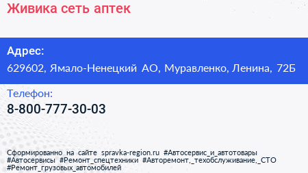 Живика, сеть аптек по адресу 629602, Ямало-Ненецкий АО, Муравленко, Ленина, 72Б в дальнейшем Организация, размещена в следующих категориях: