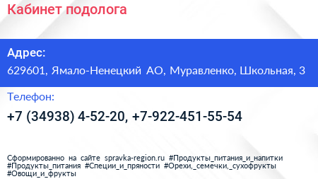 Кабинет подолога по адресу 629601, Ямало-Ненецкий АО, Муравленко, Школьная, 3 в дальнейшем Организация, размещена в следующих категориях: