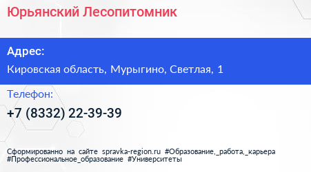 Юрьянский Лесопитомник по адресу Кировская область, Мурыгино, Светлая, 1 в дальнейшем Организация, размещена в следующих категориях: