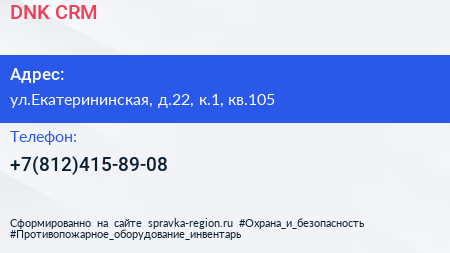 DNK CRM по адресу ул.Екатерининская, д.22, к.1, кв.105 в дальнейшем Организация, размещена в следующих категориях: