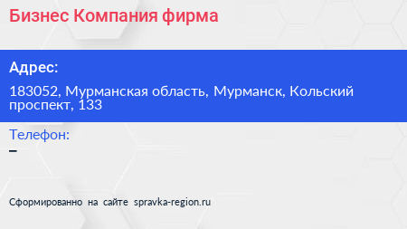 Бизнес-Компания, фирма по адресу 183052, Мурманская область, Мурманск, Кольский проспект, 133 в дальнейшем Организация, размещена в следующих категориях: