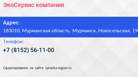 ЭкоСервис, компания по адресу 183010, Мурманская область, Мурманск, Новосельская, 19 в дальнейшем Организация, размещена в следующих категориях: