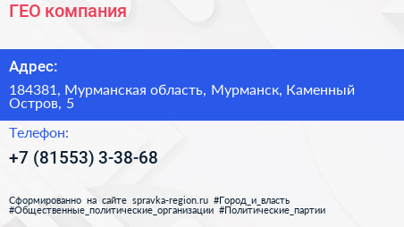 ГЕО, компания по адресу 184381, Мурманская область, Мурманск, Каменный Остров, 5 в дальнейшем Организация, размещена в следующих категориях: