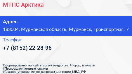 МТПС Арктика по адресу 183034, Мурманская область, Мурманск, Транспортная, 7 в дальнейшем Организация, размещена в следующих категориях: