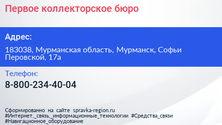 Первое коллекторское бюро по адресу 183038, Мурманская область, Мурманск, Софьи Перовской, 17а в дальнейшем Организация, размещена в следующих категориях: