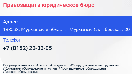 Правозащита, юридическое бюро по адресу 183038, Мурманская область, Мурманск, Октябрьская, 30 в дальнейшем Организация, размещена в следующих категориях: