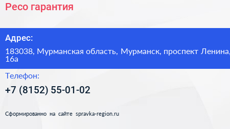 Ресо гарантия по адресу 183038, Мурманская область, Мурманск, проспект Ленина, 16а в дальнейшем Организация, размещена в следующих категориях: