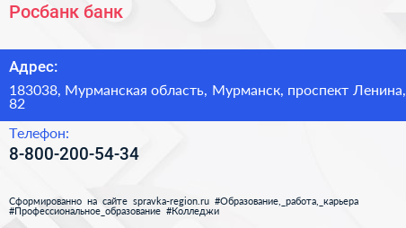 Росбанк, банк по адресу 183038, Мурманская область, Мурманск, проспект Ленина, 82 в дальнейшем Организация, размещена в следующих категориях: