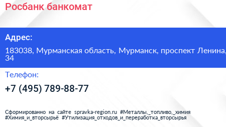 Росбанк, банкомат по адресу 183038, Мурманская область, Мурманск, проспект Ленина, 34 в дальнейшем Организация, размещена в следующих категориях: