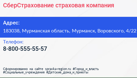СберСтрахование, страховая компания по адресу 183038, Мурманская область, Мурманск, Воровского, 4/22 в дальнейшем Организация, размещена в следующих категориях: