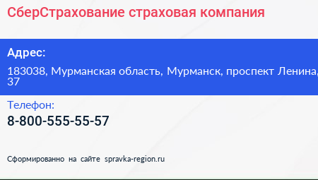 СберСтрахование, страховая компания по адресу 183038, Мурманская область, Мурманск, проспект Ленина, 37 в дальнейшем Организация, размещена в следующих категориях: