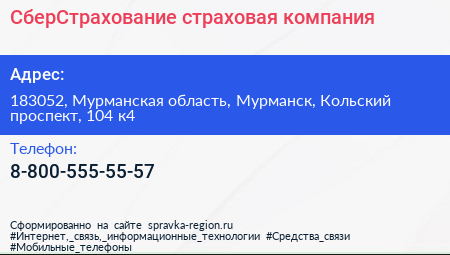 СберСтрахование, страховая компания по адресу 183052, Мурманская область, Мурманск, Кольский проспект, 104 к4 в дальнейшем Организация, размещена в следующих категориях: