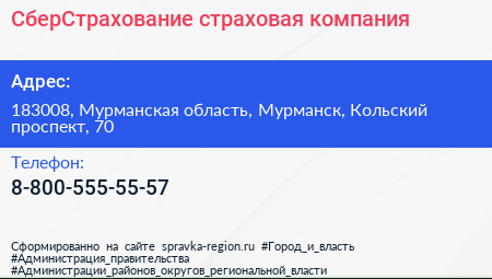 СберСтрахование, страховая компания по адресу 183008, Мурманская область, Мурманск, Кольский проспект, 70 в дальнейшем Организация, размещена в следующих категориях: