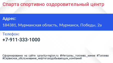 Спарта, спортивно-оздоровительный центр по адресу 184381, Мурманская область, Мурманск, Победы, 2а в дальнейшем Организация, размещена в следующих категориях: