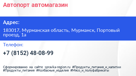 Автопорт, автомагазин по адресу 183017, Мурманская область, Мурманск, Портовый проезд, 1а в дальнейшем Организация, размещена в следующих категориях:
