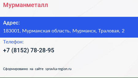 Мурманметалл по адресу 183001, Мурманская область, Мурманск, Траловая, 2 в дальнейшем Организация, размещена в следующих категориях: