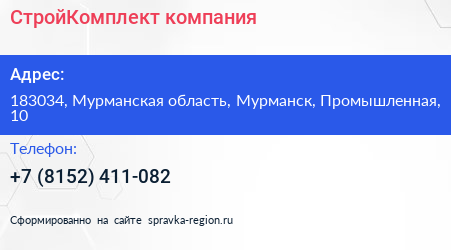 СтройКомплект, компания по адресу 183034, Мурманская область, Мурманск, Промышленная, 10 в дальнейшем Организация, размещена в следующих категориях: