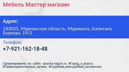 Мебель-Мастер, магазин по адресу 183025, Мурманская область, Мурманск, Капитана Буркова, 19/2 в дальнейшем Организация, размещена в следующих категориях: