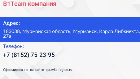 B1Team, компания по адресу 183038, Мурманская область, Мурманск, Карла Либкнехта, 27а в дальнейшем Организация, размещена в следующих категориях: