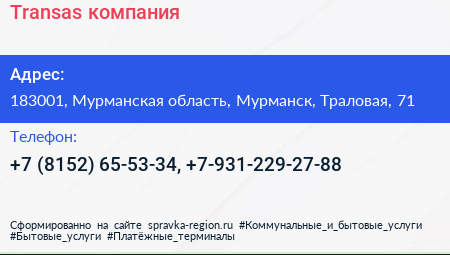 Transas, компания по адресу 183001, Мурманская область, Мурманск, Траловая, 71 в дальнейшем Организация, размещена в следующих категориях: