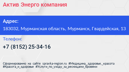 Актив Энерго, компания по адресу 183032, Мурманская область, Мурманск, Гвардейская, 13 в дальнейшем Организация, размещена в следующих категориях: