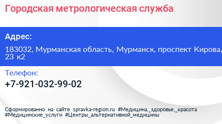 Городская метрологическая служба по адресу 183032, Мурманская область, Мурманск, проспект Кирова, 23 к2 в дальнейшем Организация, размещена в следующих категориях: