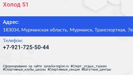 Холод 51 по адресу 183034, Мурманская область, Мурманск, Транспортная, 7в в дальнейшем Организация, размещена в следующих категориях: