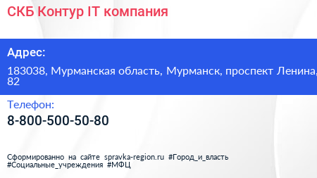 СКБ Контур, IT-компания по адресу 183038, Мурманская область, Мурманск, проспект Ленина, 82 в дальнейшем Организация, размещена в следующих категориях:
