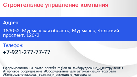Строительное управление, компания по адресу 183052, Мурманская область, Мурманск, Кольский проспект, 126/2 в дальнейшем Организация, размещена в следующих категориях: