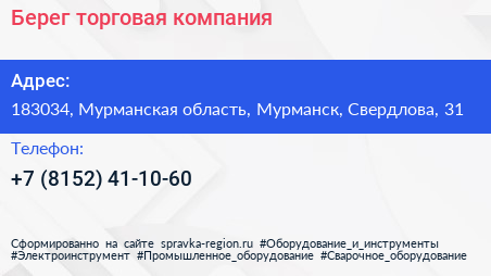 Берег, торговая компания по адресу 183034, Мурманская область, Мурманск, Свердлова, 31 в дальнейшем Организация, размещена в следующих категориях: