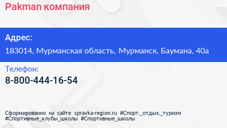 Pakman, компания по адресу 183014, Мурманская область, Мурманск, Баумана, 40а в дальнейшем Организация, размещена в следующих категориях: