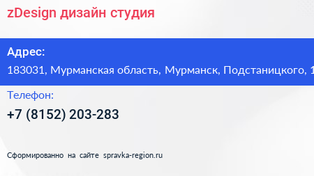 zDesign, дизайн-студия по адресу 183031, Мурманская область, Мурманск, Подстаницкого, 1 в дальнейшем Организация, размещена в следующих категориях: