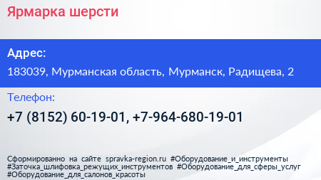 Ярмарка шерсти по адресу 183039, Мурманская область, Мурманск, Радищева, 2 в дальнейшем Организация, размещена в следующих категориях: