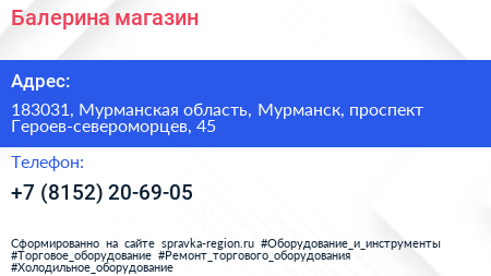 Балерина, магазин по адресу 183031, Мурманская область, Мурманск, проспект Героев-североморцев, 45 в дальнейшем Организация, размещена в следующих категориях: