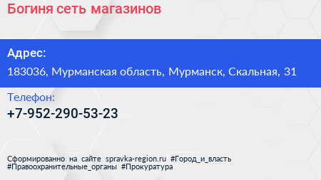 Богиня, сеть магазинов по адресу 183036, Мурманская область, Мурманск, Скальная, 31 в дальнейшем Организация, размещена в следующих категориях: