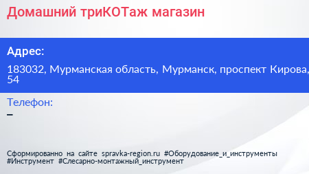 Домашний триКОТаж, магазин по адресу 183032, Мурманская область, Мурманск, проспект Кирова, 54 в дальнейшем Организация, размещена в следующих категориях: