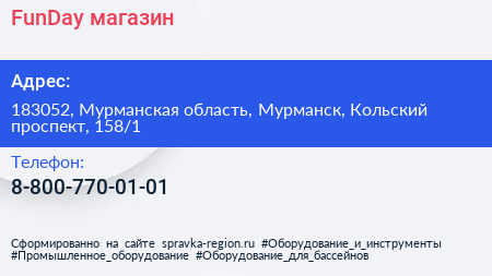 FunDay, магазин по адресу 183052, Мурманская область, Мурманск, Кольский проспект, 158/1 в дальнейшем Организация, размещена в следующих категориях:
